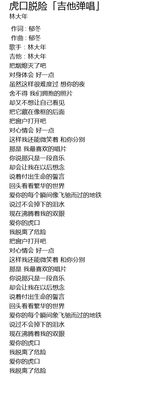 | [01:47.699] | ài nǐ de hǔ kǒu |
