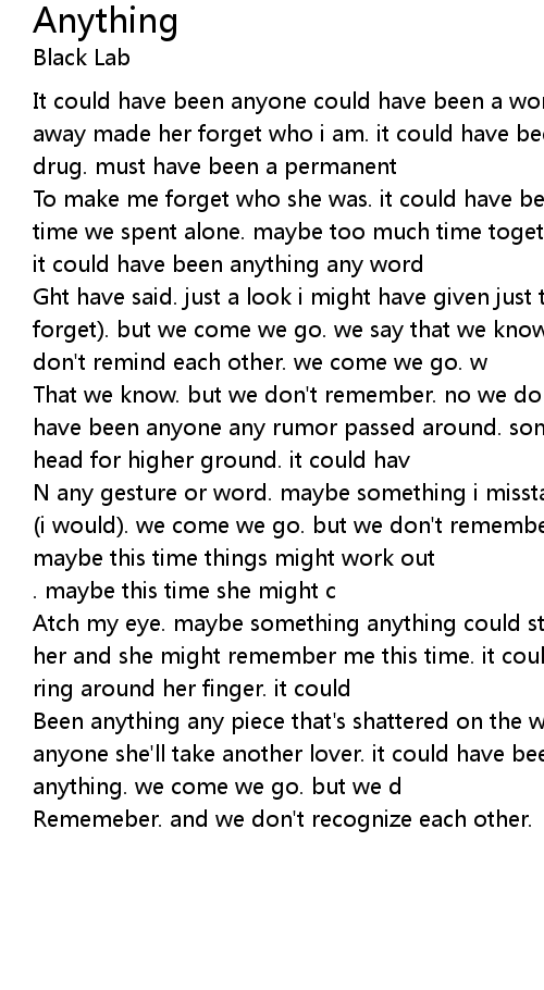 Been anything any piece that's shattered on the way. it could have been anything anyone she'll take another lover. it could have been anything anything anything anything. we come we go. but we d |