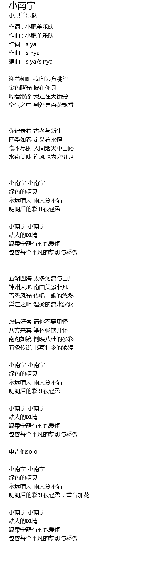 | 作词 : 小肥羊乐队 | |