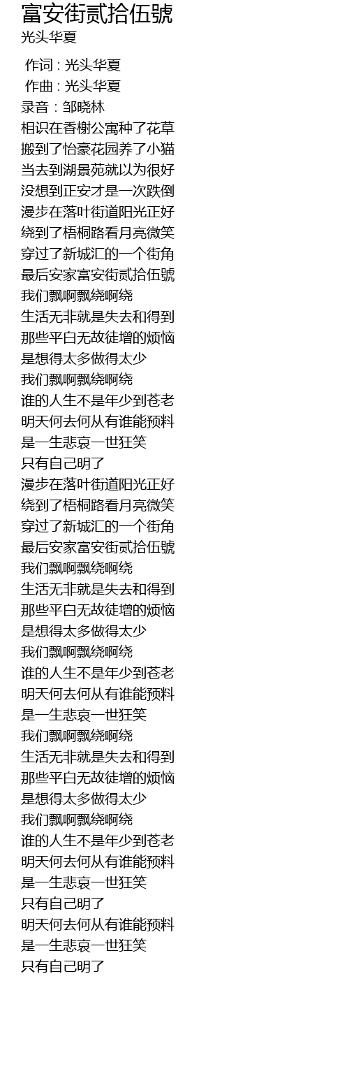 | [00:48.856] | 最后安家富安街贰拾伍號 |