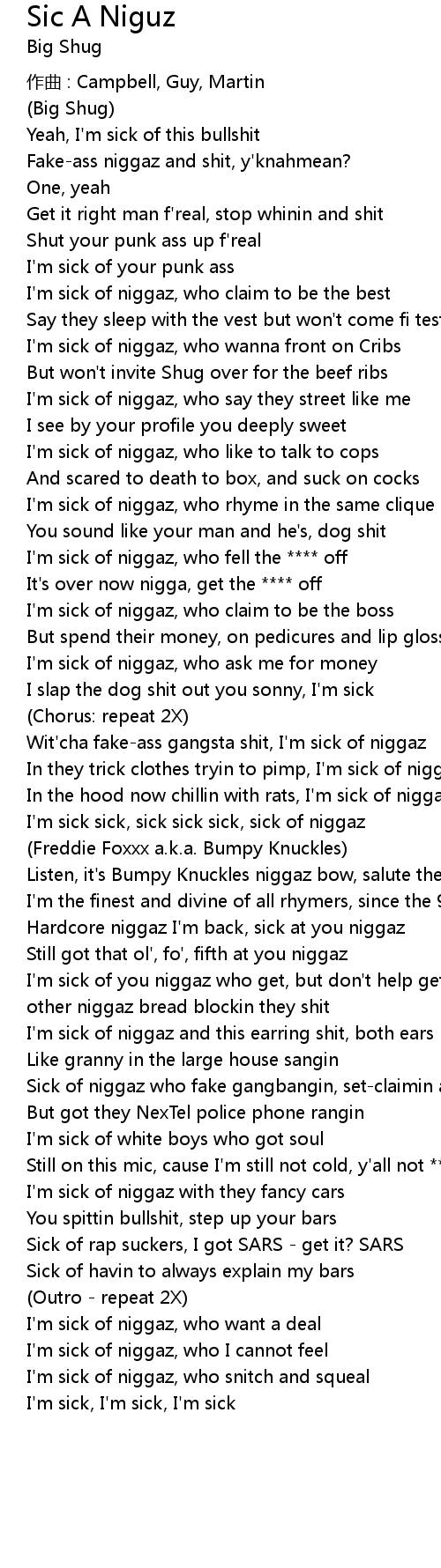 | I'm sick sick, sick sick sick, sick of niggaz | |