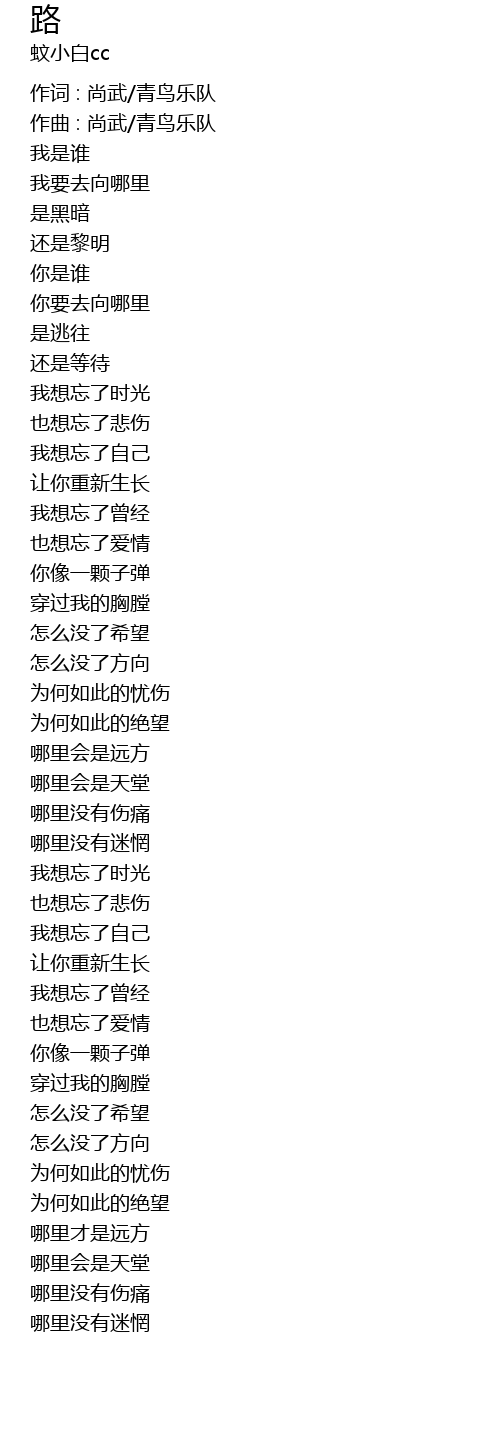| 作词 : 尚武/青鸟乐队 | |