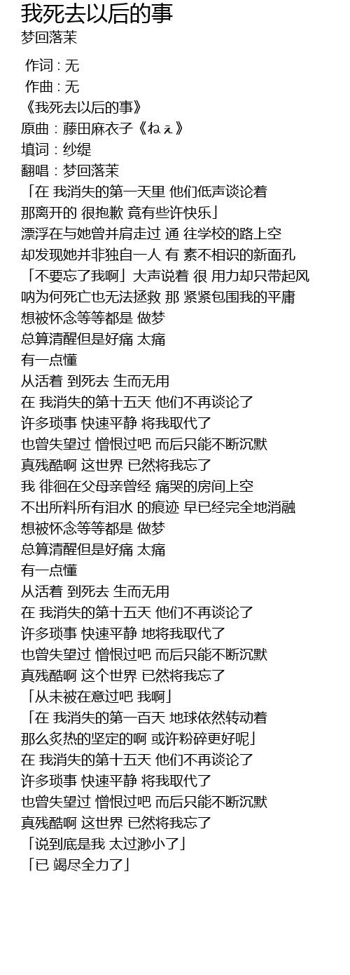 | [00:00.00] | wǒ sǐ qù yǐ hòu de shì |