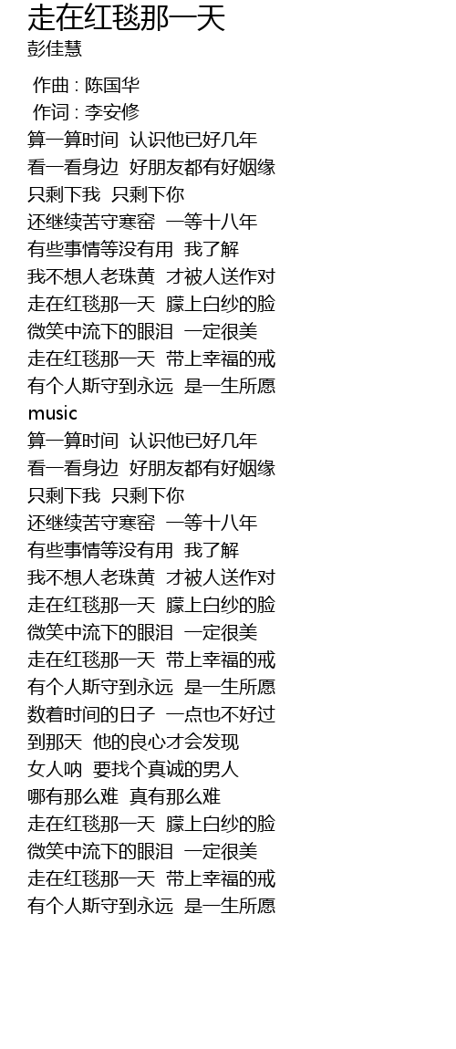 | [03:35.290] | 走在红毯那一天 朦上白纱的脸 |