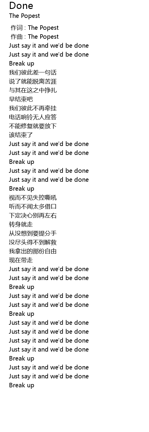 | [00:59.61] | Just say it and we' d be done |