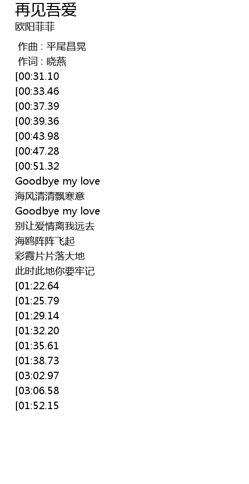 | [02:17.53][00:31.10] | Goodbye my love |