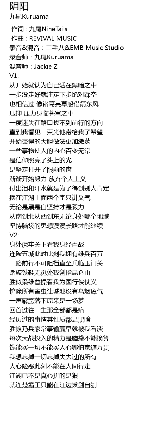 | [00:00.000] | 作词 : 九尾NineTails |