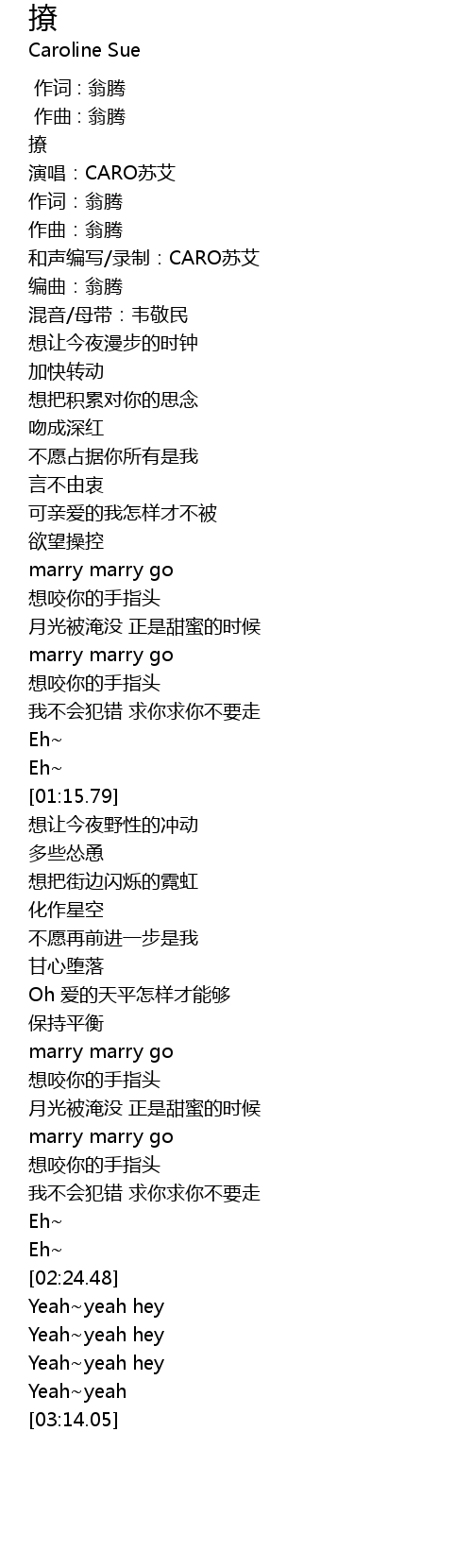 | [00:10.42] | 和声编写/录制:CARO苏艾 |