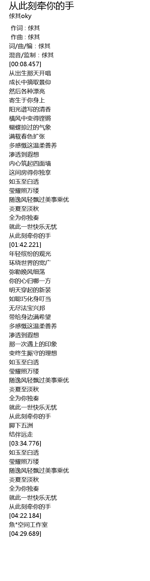 | [04:15.897] | 从此刻牵你的手 |