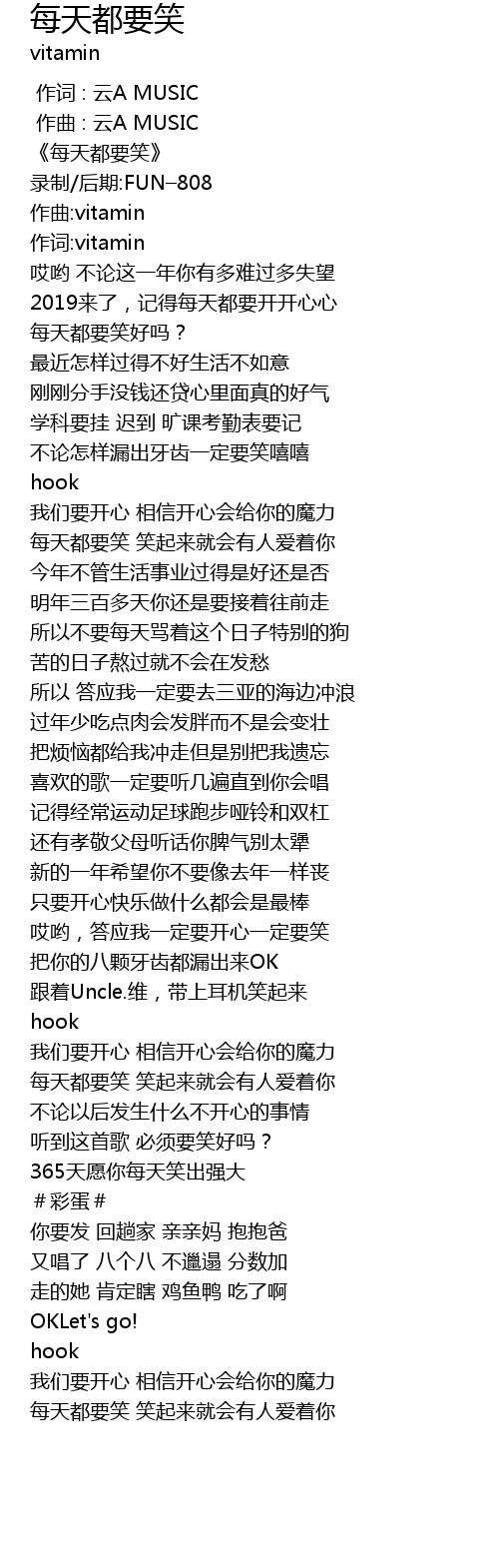 | [00:17.548] | měi tiān dū yào xiào hǎo ma? |