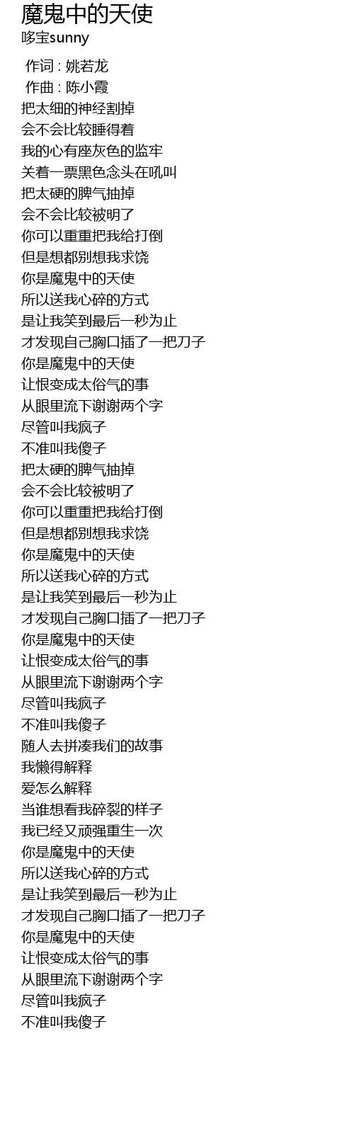 | [01:15.353] | nǐ shì mó guǐ zhōng de tiān shǐ |