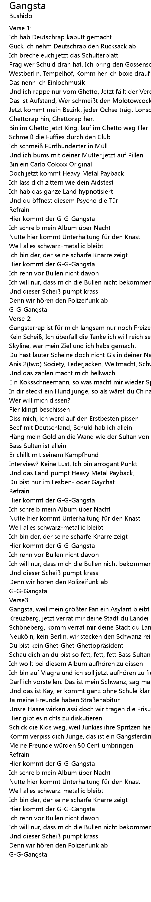 | Gangsta, weil mein größter Fan ein Asylant bleibt | |