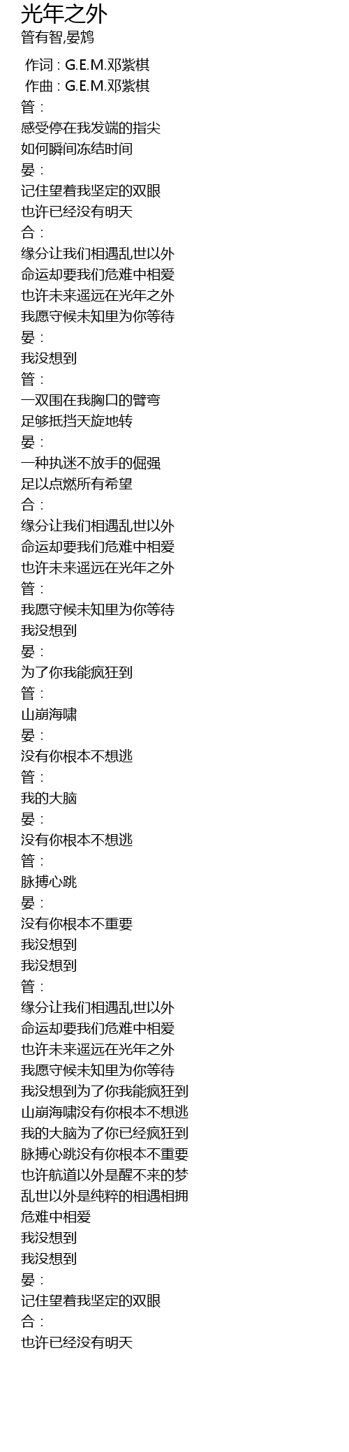 | [00:00.000] | 作词 : G.E.M.邓紫棋 |