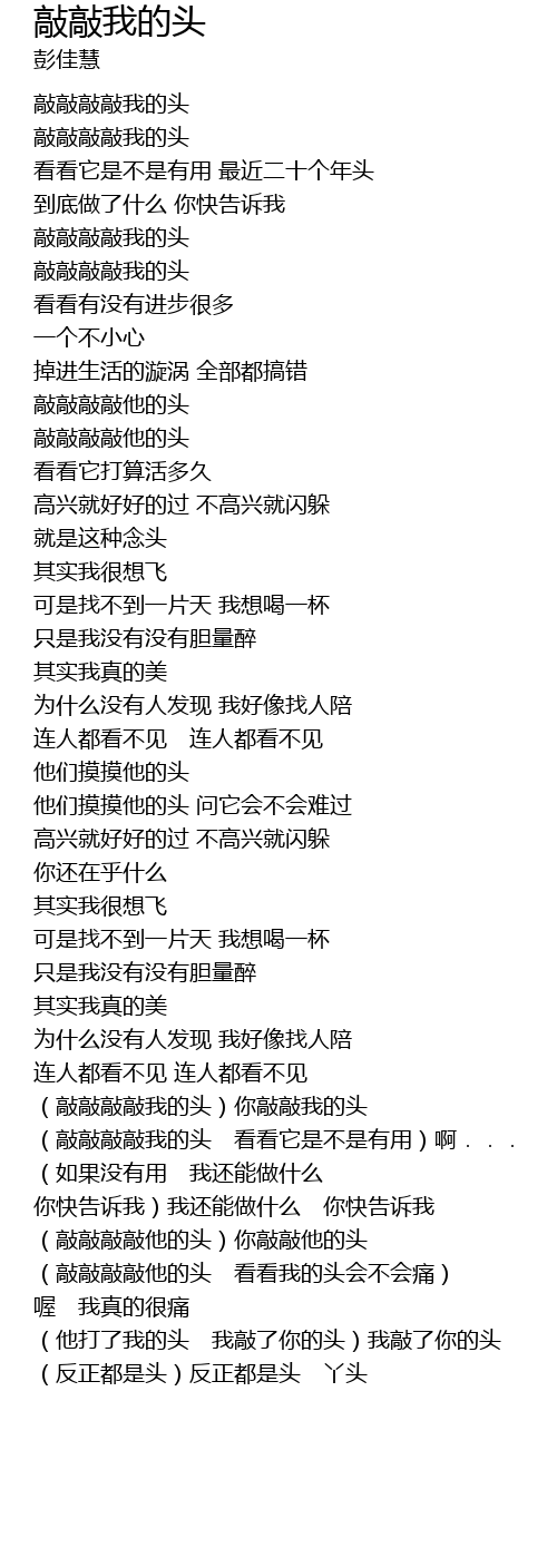 | [02:57.35] | (敲敲敲敲我的头)你敲敲我的头 |