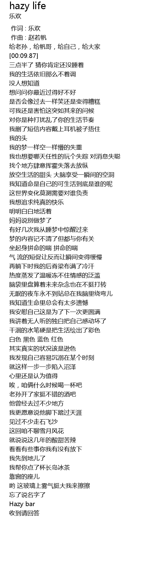 | [00:19.71] | 三点半了 猜你肯定还没睡着 |