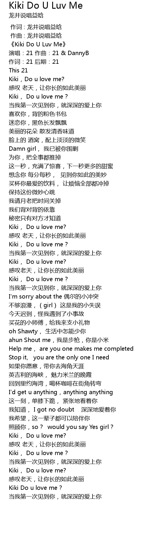 | [00:00.00] | 《Kiki Do U Luv Me》 |