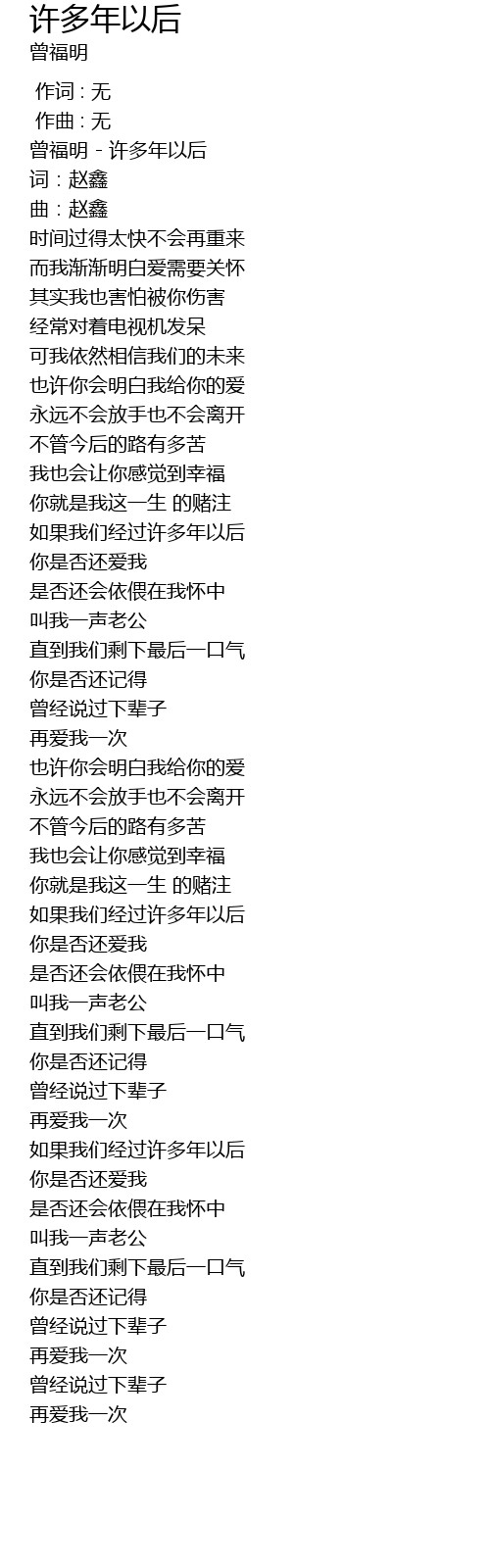 | [00:04.915] | 曾福明 - 许多年以后 |