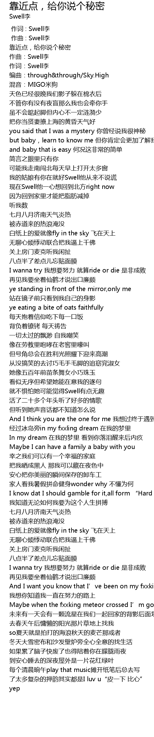 | [00:00.000] | 作词 : Swell李 |