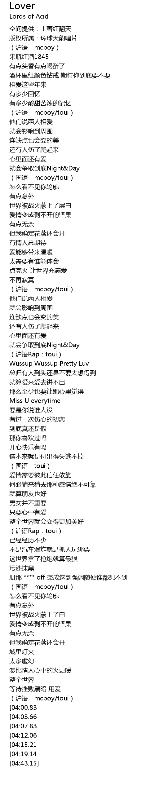 | [03:50.05] | (沪语:mcboy/toui) |