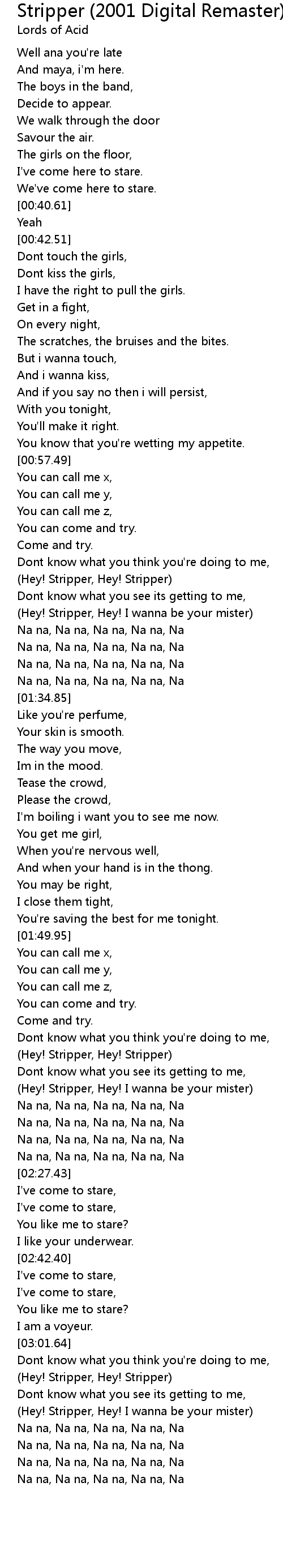 (Hey! Stripper, Hey! Stripper) |