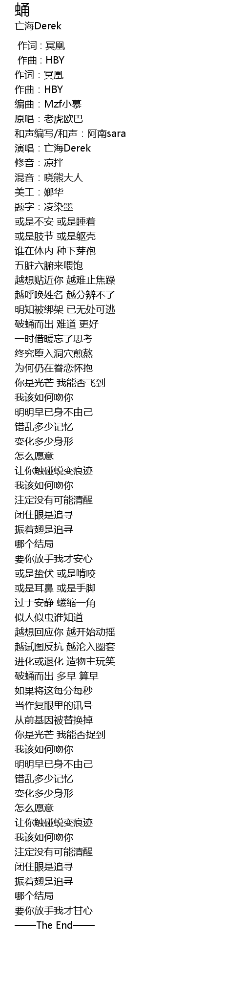 | [01:01.93] | 破蛹而出 难道 更好 |
