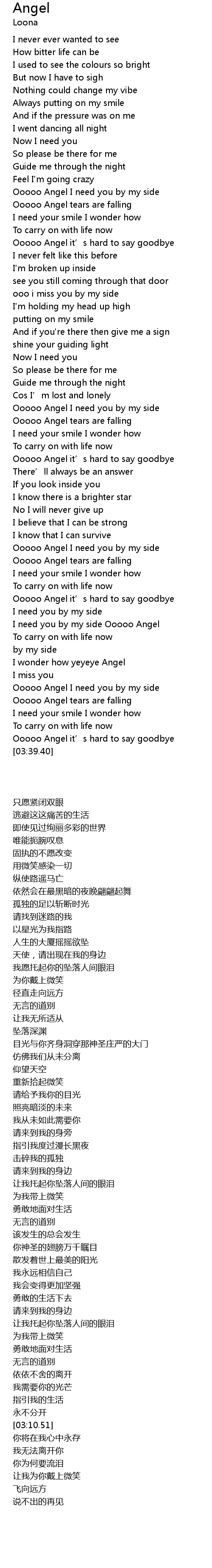 | [03:17.54] | Ooooo Angel I need you by my side |