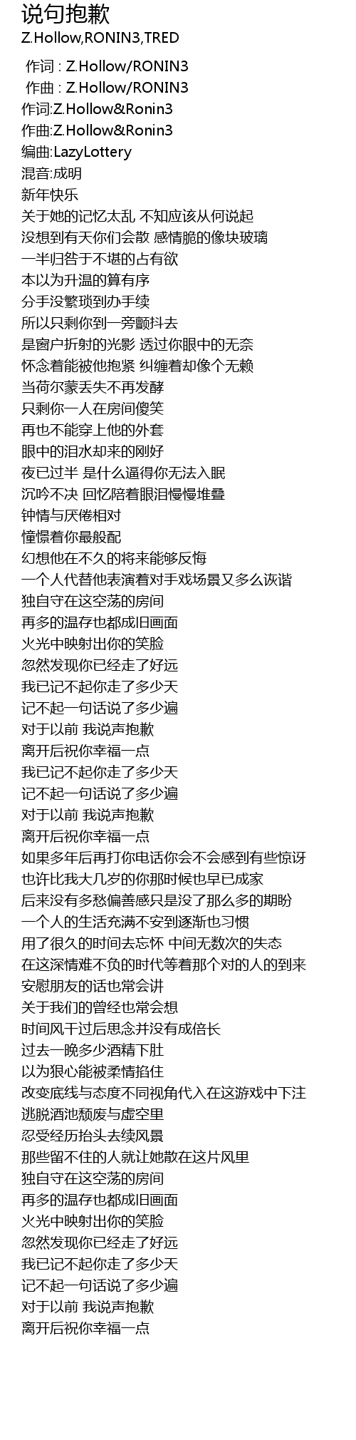 | [00:04.700] | 作词:Z.Hollow&Ronin3 |