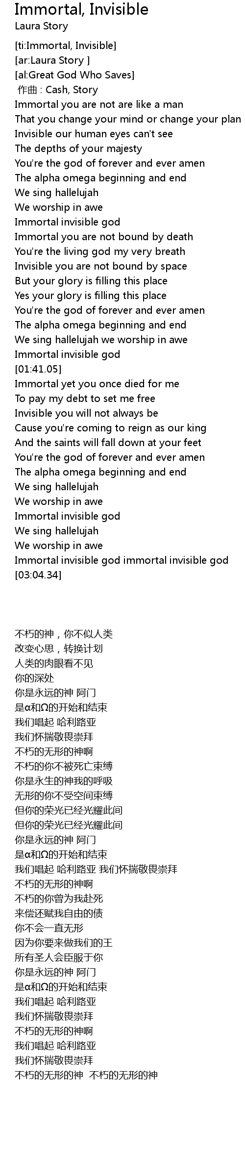 | [02:49.34] | Immortal invisible god immortal invisible god |