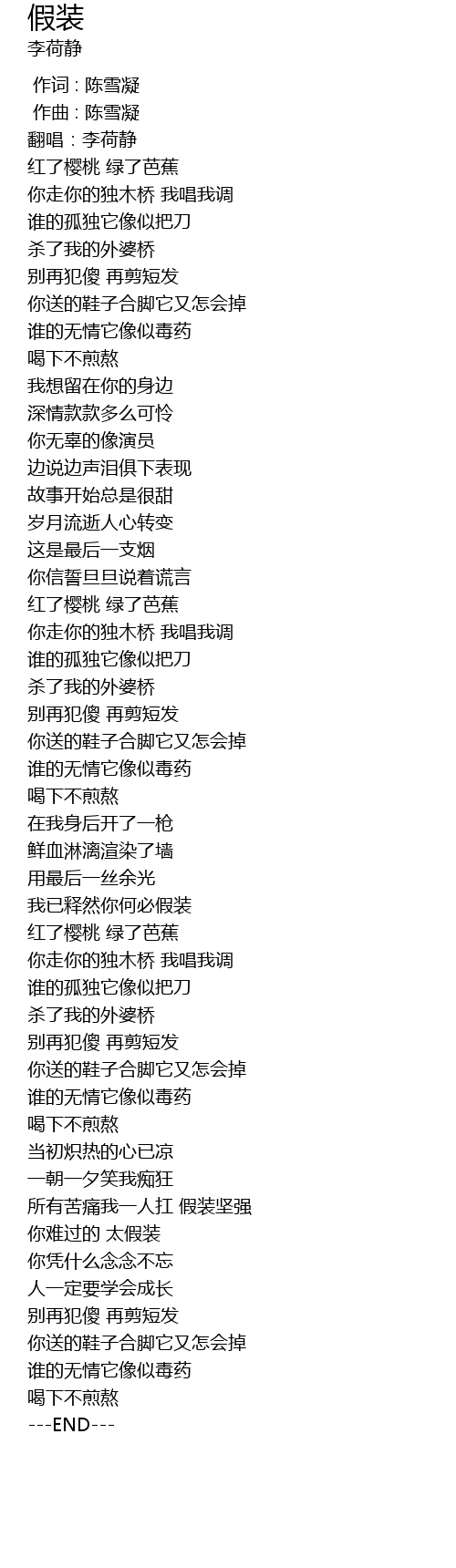 | [02:31.866] | wǒ yǐ shì rán nǐ hé bì jiǎ zhuāng |