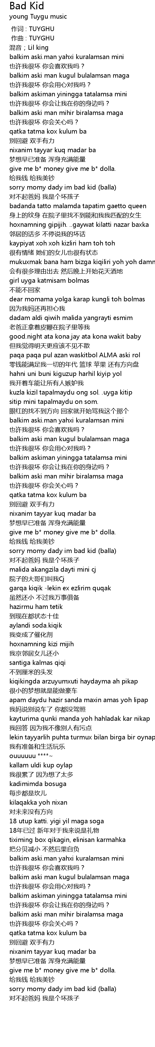 | [01:34.375] | sorry momy dady im bad kid balla |