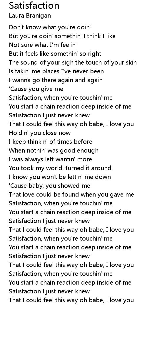 Satisfaction I just never knew |