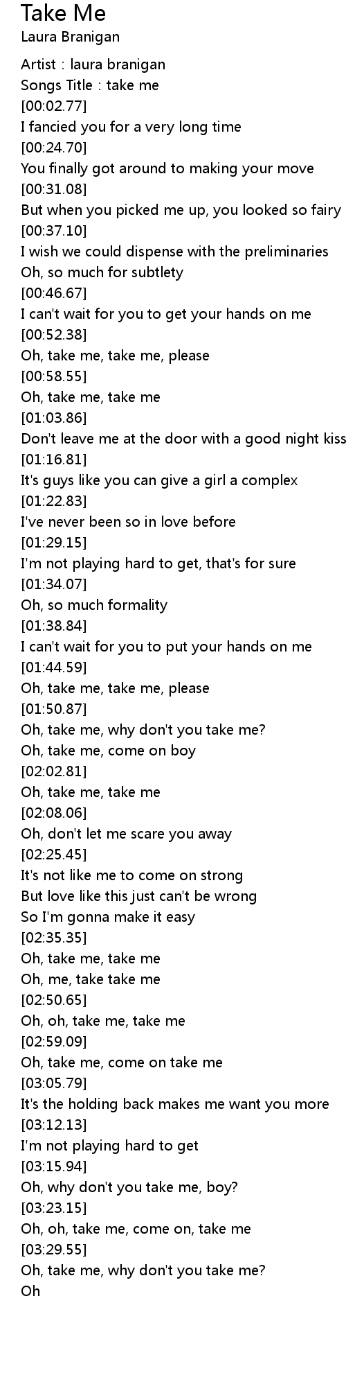 | [03:00.33] | Oh, take me, come on take me |