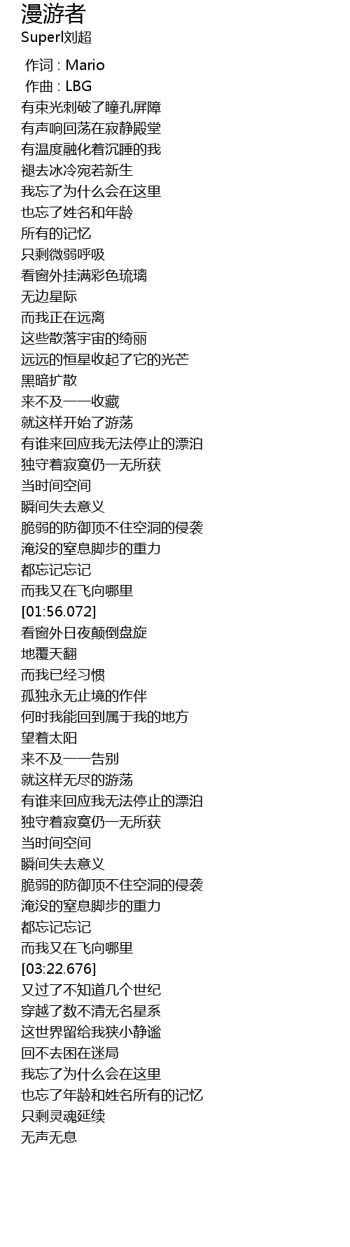 | [01:20.630] | 有谁来回应我无法停止的漂泊 |