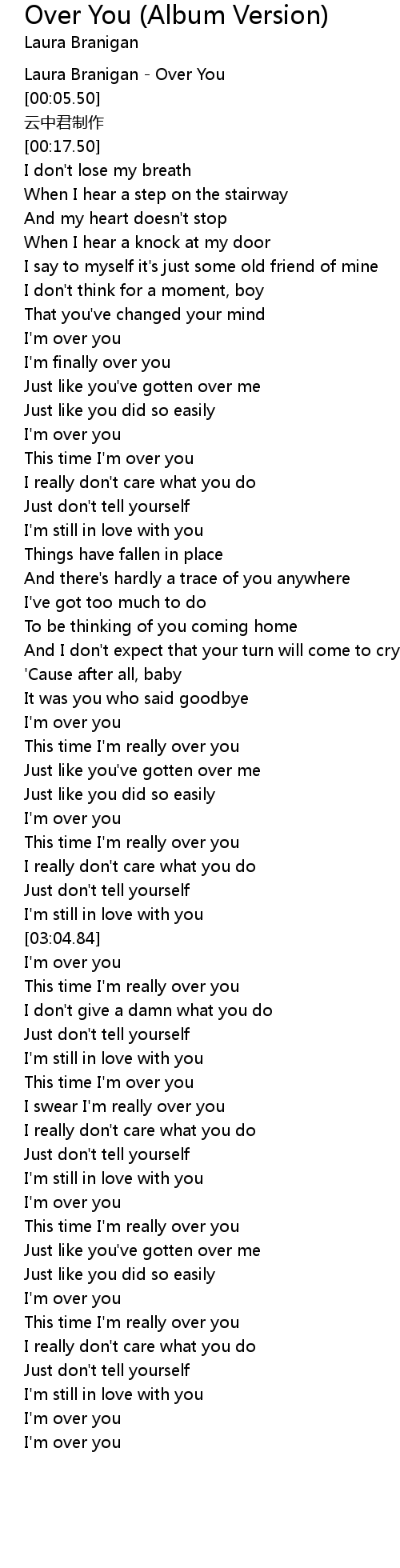 | [01:22.48] | I'm over you |