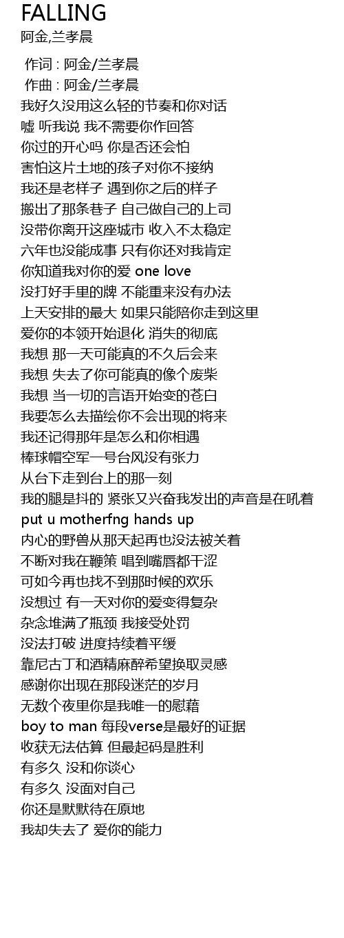 | [00:00.000] | 作词 : 阿金/兰孝晨 |