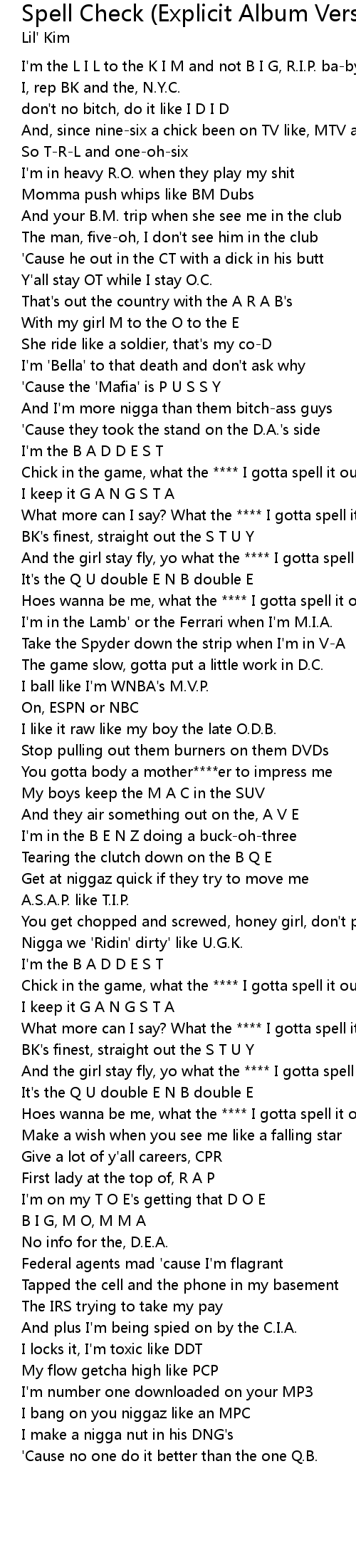 And the girl stay fly, yo what the **** I gotta spell it out? |