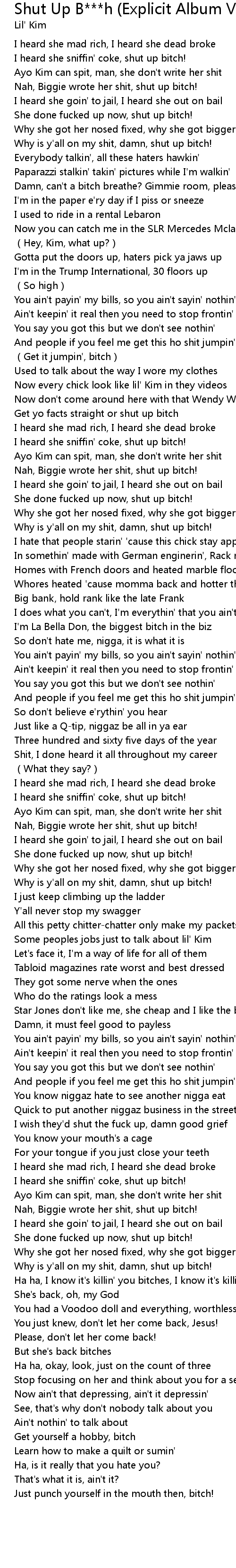 | Why is y'all on my shit, damn, shut up bitch! | |
