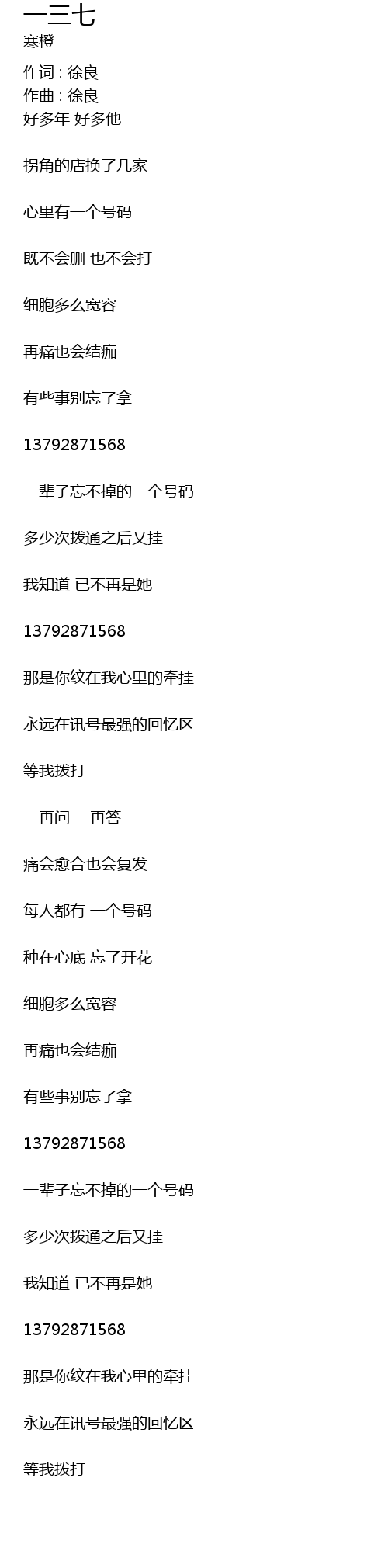 | 一辈子忘不掉的一个号码 | |