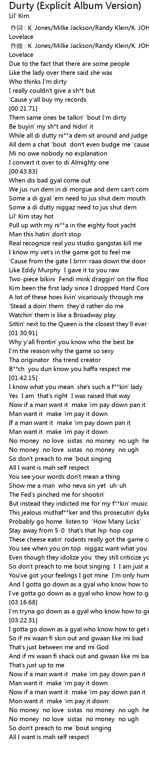 | [00:55.35] | Lil' Kim stay hot |