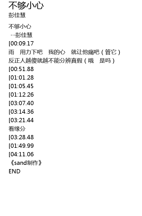 | [00:01.58] | 不够小心 |