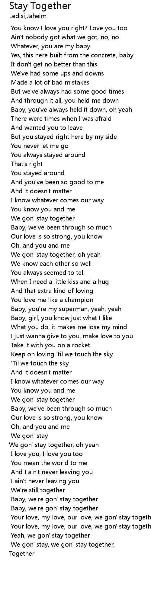 | [03:21.16] | Your love, my love, our love, we gon' stay together |
