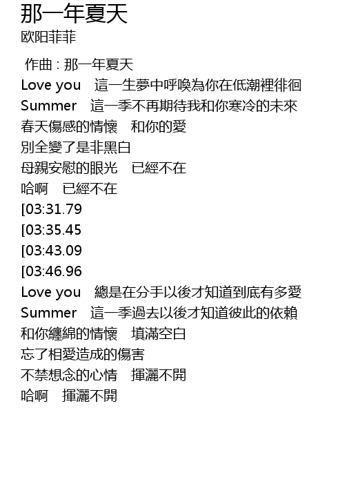 | [04:09.01][03:46.96][03:18.18][01:25.64] | 那一年夏天 畫面不再重演 |