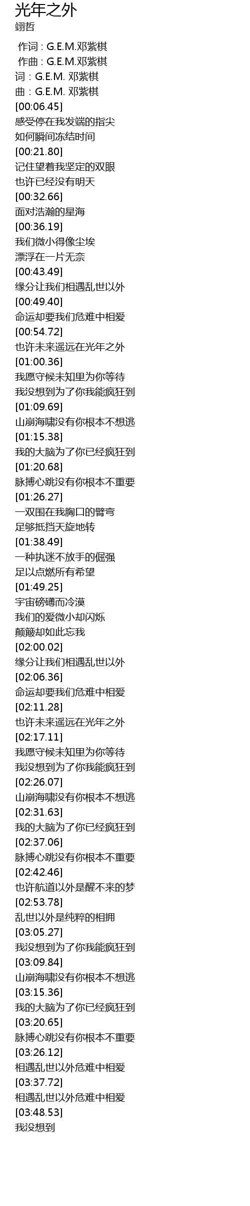 | [00:03.46] | 曲:G.E.M. 邓紫棋 |
