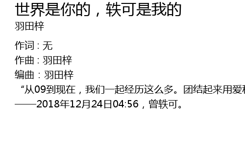 | Song | 世界是你的,轶可是我的 |