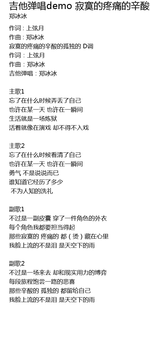| Song | 吉他弹唱demo 寂寞的疼痛的辛酸的孤独的 |