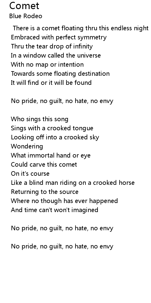 There is a comet floating thru this endless night |