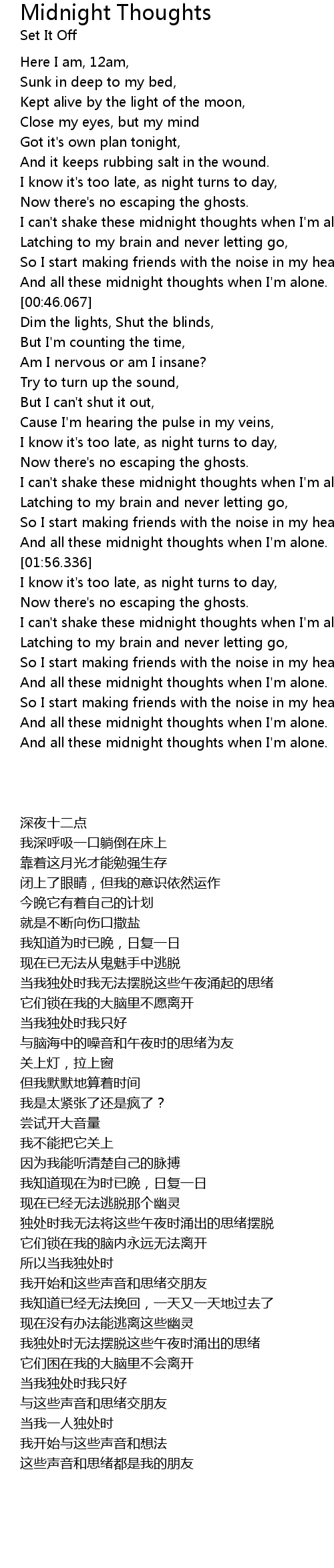 And all these midnight thoughts when I'm alone. |