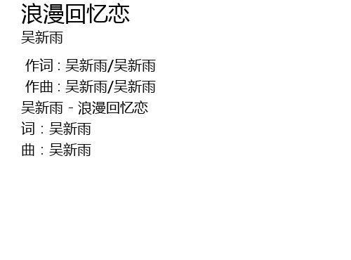 | [00:12.624] | 吴新雨 - 浪漫回忆恋 |