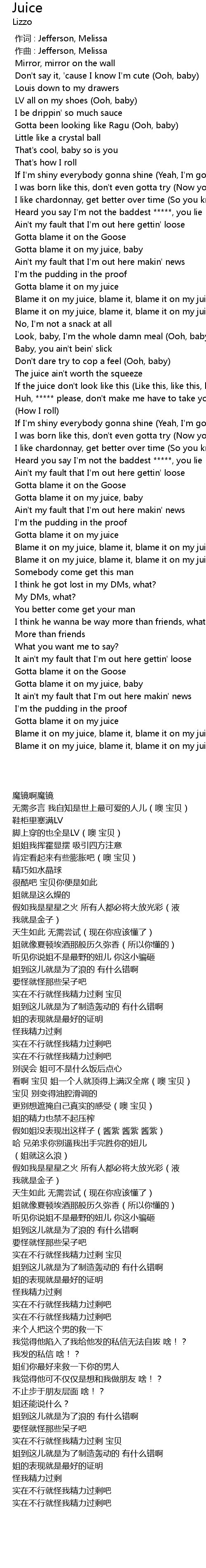 | [03:00.835] | Blame it on my juice, blame it, blame it on my juice |