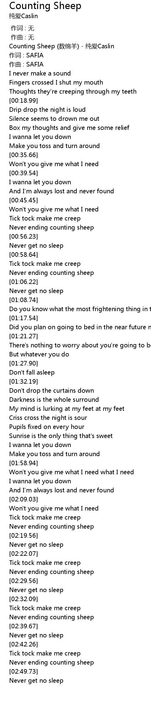 | [00:00.00] | Counting Sheep shu mian yang chun ai Caslin |